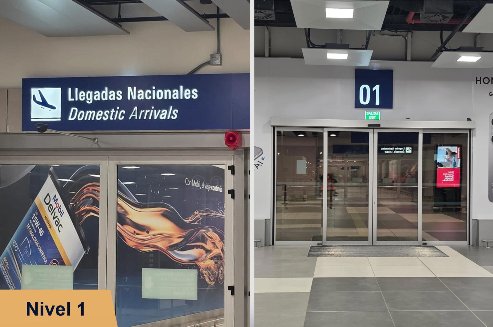 - Para llegadas nacionales: Puerta #1, Nivel 1